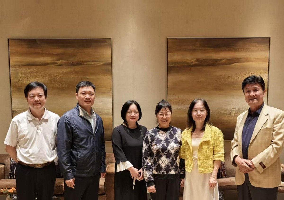 冯娇(左三)与意大利施华公司中国区总裁(右三)一行到瀚林访问