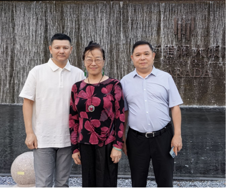 郭林霞、李玮(左一)、带领俄罗斯伙伴吉玛先生一行访问中国民营巨头新长江集团,孙涵副总(左二)陪同参观